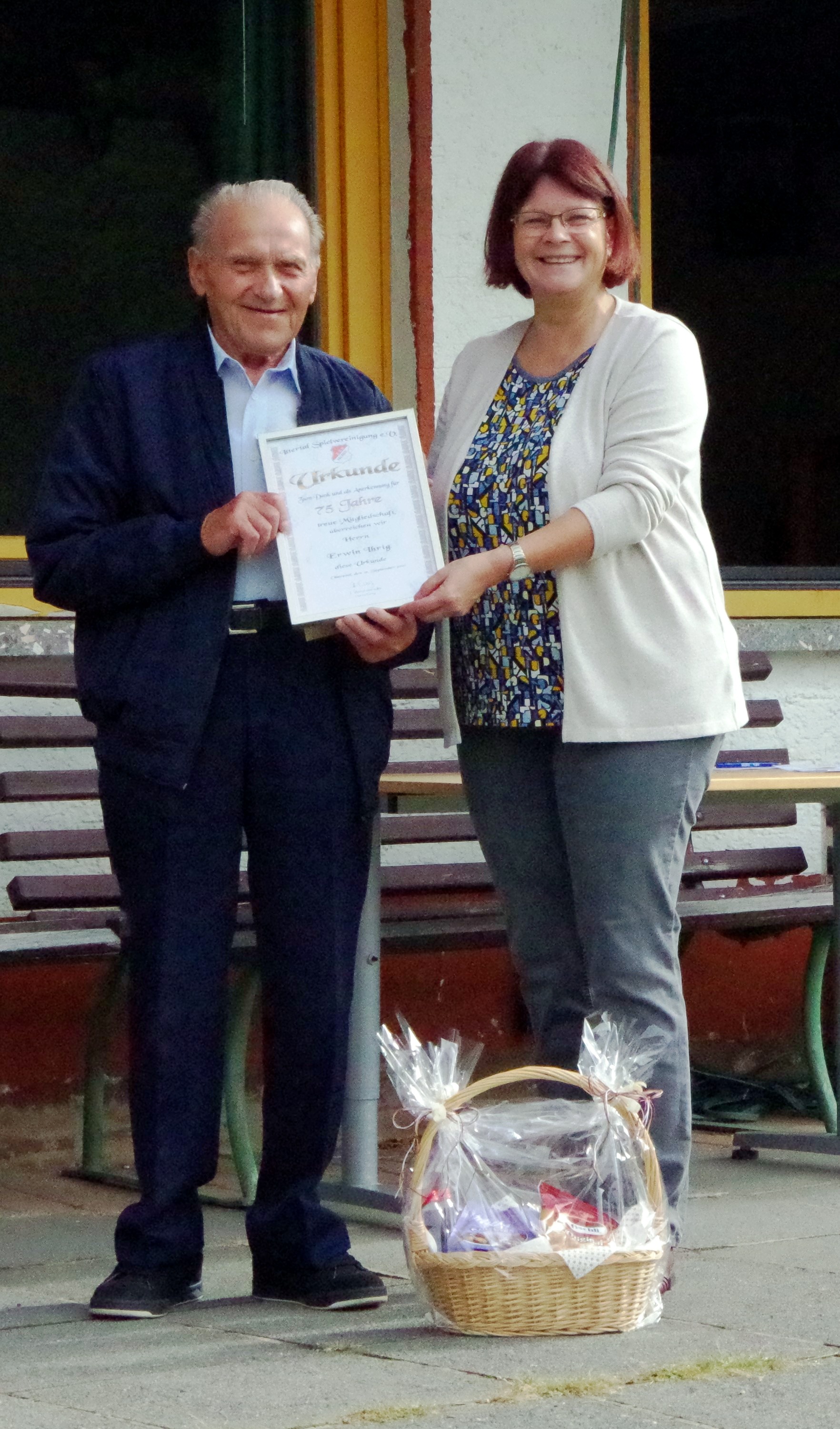 E. Ihrig Gründungsmitglied 75 Jahre Vereinstreue H. Münch 70 Jahre Vereinstreue