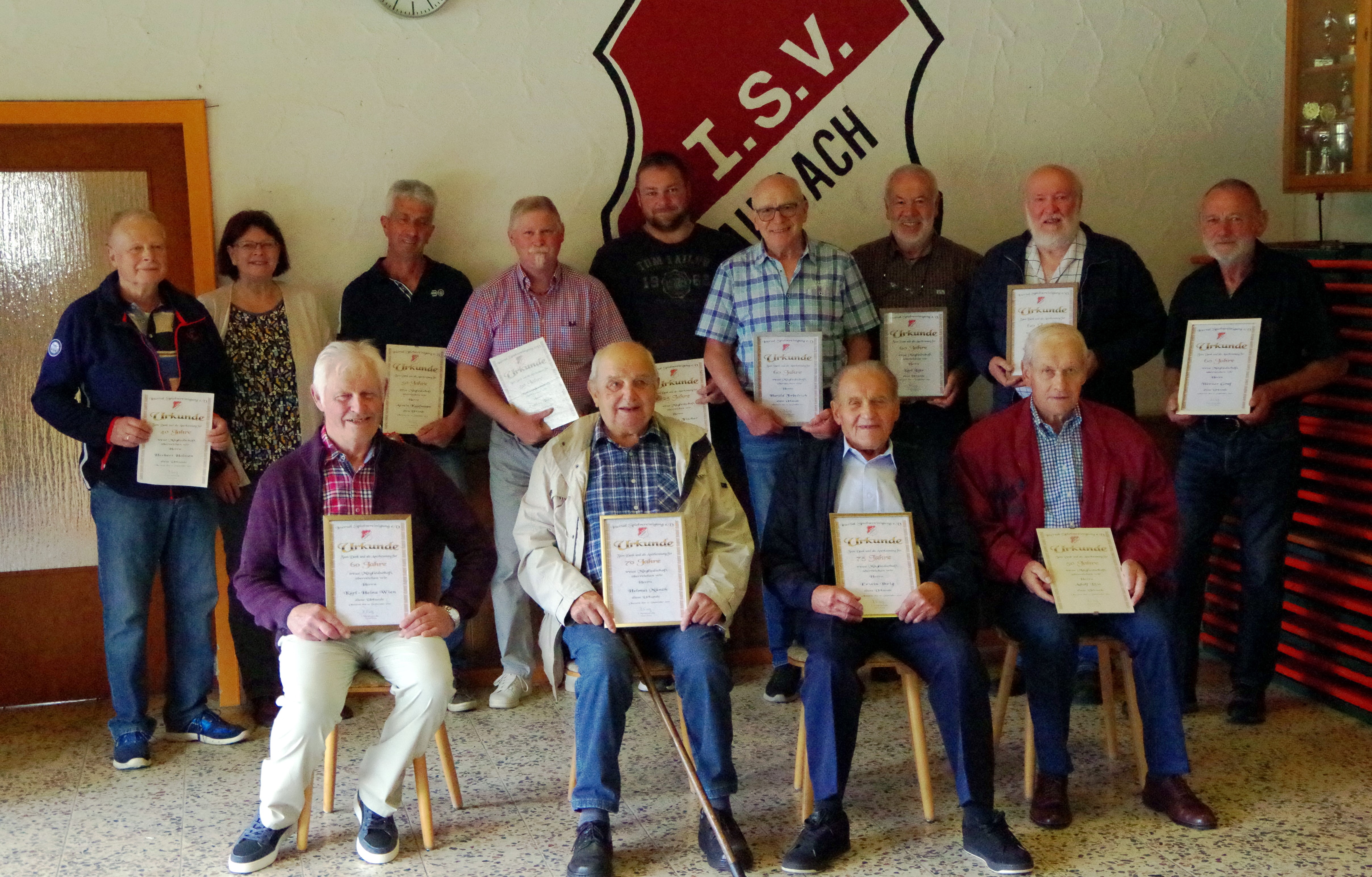 Besonders begrüßt von der 1. Vorsitzenden wurde Ehrenmitglied und Ehrenvorsitzender Franz Kral. 28 Mitglieder standen zur Ehrung für langjährige Mitgliedschaft an, jedoch konnten nicht alle kommen. Eine besondere Freude ist es, dass Erwin Ihrig als Gründungsmitglied für 75 Jahre Vereinstreue geehrt werden konnte. Ebenso Hans Sepp für 75 Jahre und Helmut Münch für 70 Jahre Mitgliedschaft, weiter 12 Personen für 60 Jahre, 4 für 50 Jahre, 2 für 40 Jahre und 7 für 25 Jahre.