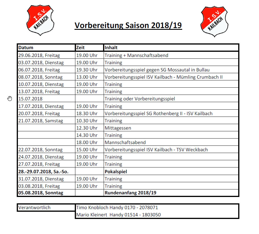 • Fußball - ISV Vorbereitungsplan Saison 2018/19